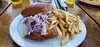 Spent a wonderful afternoon enjoying drinks and lunch by the Bay. Comfort food menu and sea food ( burgers, fish and chips etc.) I had a nice Cobb salad which was nicely prepared. They also serve oysters and shrimp Louis etc. They have a full bar and a very large outside dinin b area.Wonderful way to spend a beautiful afternoon. When San Francisco weather is at its best this is a great place for an outside lunch.