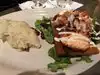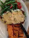 Menu and reviews were good so we decided to give it a try. Wife's and my food was very good. Peacan crushed chicken with grilled sweet potato wedges and green beans was very good. I had Cedar plank grilled Salmon with mashed potatoes and greens. Salmon was excellent and mash potatoes were also good. Brought out 2 types of sliced breads and butter while we waited for our meals. Both breads were tasty. The only reason for 4 stars instead of 5 was the waitress didn't return for quite a while after bring our meals.