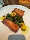 One of our business partners took my team out for dinner here recently! I had never even heard of the restaurant when he told me he had made a reservation for us. Six courses later we were so stuffed and happy we could barely get up and walk out! We started at the bar for drinks before we went in and they have an amazing drink menu. Everyone had something different and new and several of us passed them around and tried each other’s cocktails. The wine was flowing as dinner started and I was hooked as soon as they brought out the bacon sampler. I’ll only report on the main course which was the 45 day dry aged 32 ounce bone in rib eye. My wife and I split this due to its size and all the other food that was part of the meal. When I tasted that medium rare masterpiece I wanted to get up and go hug the chef. The experience was fantastic. The service was phenomenal. The food was mouth watering. The wine was perfect! And someone else was paying. You can’t get better than this! Definitely will return here!