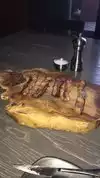 Was looking forward to eat @ The Knife, but it was very disappointing. The atmosphere has a lot to be desired. We were seated at a scratched, peeling wooden table without tablecloth. Was given a paper menu with food stains. The lunch menu was limited and could not ordered from regular menu. The stakes were overcooked, the sides came at different times during the meal, one arrived at the end because the kitchen forgot to make it. And the worst of all, we had to constantly swat flies off our food. Extremely overpriced, overall terrible experience!