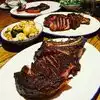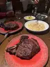 The service, wine, and salads were great....over all the place is good. But for me the noise level is too high...Tuen down the music please. Their rib-eye steak ...24oz....was tooo big. This was the small ribeye. Next size was 32oz... For me the steak was over seasoned...to much pepper and salt. It was however cooked to perfection at a true medium rare state. My suggestion, to reduce waste and save on doggy bags, is to offer smaller steaks or suggestions of sharing....