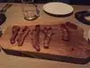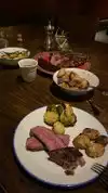 Started with the bacon sampler which was a good way to start the meal . We then went on to a couple of larger aged Steaks and split them amongst the 4 of us . They were good but we did have a 1/2 order of the oxtail ravioli which I thought was the best part of the main , so I am going to return to try a pasta dish and maybe a burger . Service was very good and a place you can go smart casual or dressed up .