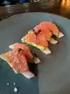 I had the wagyu skirt steak and my son had a burger. Steak was a little salty as were French fries. Yellowtail was fine. We tried the fried avocado, I guess that was ok. I feel like the menu is a little gimmicky. We didn’t have a reservation, we sat outside in the patio, which was fine.