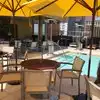 Waiters were slow and weren't paying attention to patrons. Food was mediocre at best. While we were in a hurry, four waiters were having a heated discussion about something and not paying attention to their patrons. The fries were lukewarm and the 'tuna melt' was greasy (bread) and I didn't get to taste the 'crispy shallots, fennel, and remoulade' anywhere. Not even worth half the $18! Breakfast was of the same order. When asked for coffee I received on cup out of a thermo that had been standing on the table for a while (for a friend of mine). We were never asked for a refill. The scrambled eggs with mushrooms, bacon and cheddar cheese took a while because after ten minutes the waiter came back saying 'the cook got confused'! Or was it the waiter who, yet again, wasn't paying any attention? The rooftop is a great place to hang out around the pool. No good for food, or the outdoor lounge area though!