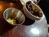 The Rum House is a small bar connected to the Edison Hotel. It appears to have a mix of hotel guests and other tourists who stop here for a drink before going to a Broadway show. Drinks are pricey, food is limited, tables are small and packed tightly together. This is not a place for all night entertainment. Most tables were occupied by people slowly sipping a drink, killing time until their show started. It explains why the staff was a bit surly. If someone occupies a table for more than an hour with 1 drink, what could the tip be? Not much. We ordered some snacks: olives and pretzel. They were fine. So, a good place to stop and have a drink- if you can find a table.