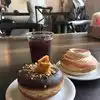 The coffee here is good and unique. Try the smoked espresso. The donuts are decent. It's the same base with different toppings and filling
