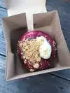 These box bring: tres leches, glazed, Chocolat, blueberry gluten free (the purple), maple and bacon and my favorite: The pinky donut: Dragon + Passion Fruit!!! It’s a 24 hr brioche ring filled with a homemade passion fruit curd, glazed in a red dragon fruit glaze (100% natural pink color btw), topped with fresh sliced raspberries, white dragon fruit, and blueberries. They are in South Miami & Wynwood shops #wynwood #dessert #donuts #donat #donats #donut #deli #awsome #deliciosas #yummi @thesaltydonut