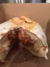 The Salty Donut is a "gourmet" donut shop serving up interesting twists in the classic treat. A colleague had brought some in to the office awhile back and I really was not all that impressed. I thought the toppings/fillings were too sweet and that the dount itself was not very good. So, when my daughter asked that we take her there, I was not expecting much and was prepared to be underwhelmed. After standing in line for quite some time, we arrived at counter to place our order. There were only eight varieties available when we arrived. I am not sure if this is a typical day's offering or if the selections were limited due to it being late afternoon. We ordered a White Chocolate Tres Leches, a Vegan Sweet Potato Pie, and a Maple and Bacon. The donut itself was far better than I remembered - actually very light and airy, not overly sweet, with a nice texture. The White Chocolate Tres Leches had a fairly substantial base of white chocolate with a light tres leches filling and topped with meringue. Although the white chocolate was a little overpowering, this was a really good donut. The Vegan Sweet Potato had good amount of sweet potato filling although it could have been improved if it had been a bit thicker. The graham cracker crumble topping added a nice bit of texture and the flavor was not overly sweet. The Maple Bacon was more bacon than maple in flavor. Good size bites of very smokey bacon topped the light maple glaze. All in all, I was duly impressed and would go back again.
