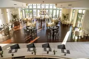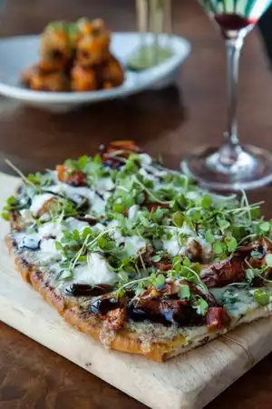 We stopped in for a quick app and a glass of wine...GO EARLY or be sure to make a reservation! It's very small and very busy! We got the last 2 stools at a shared table. The rest is sofa/ comfy seating. The views are beautiful! There is a small outdoor patio. You have to order at the bar if you are not in the "restaurant" section, which was fine. Food was actually quite good! We shared a cheese/ charcuterie plate, mac & cheese muffins and the beef sliders (which were AWESOME)! We asked if they could box the remaining cheese tray to take with us for the next day, and staff was super accommodating.... Bottom line though, go EARLY! We arrived at 5pm....!