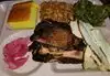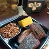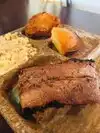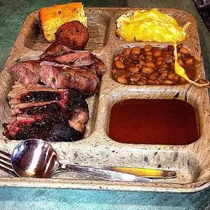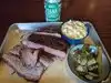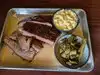 The meat was really good. I had sliced brisket with two sides (mac and cheese and beans) both sides i did not eat. The cornbread was okay. Not very corny more heavy bread. The meat was very tender and the rub had a good taste and crunch I wish the crust on my meat was on the meat and not on the fat. I'm from Oklahoma so, the BBQ sauce was just way to tangy for me. Like too much vinager flavor. The plate was $14 and all I ate was the meat.....I wouldn't come back. A brisket sandwich was $10 alone.