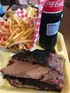 Wow. Another Great BBQ place. I had the ribs and another in the party had brisket. The ribs were so tender and full of flavor. There must have been 5-6 ribs in the plate maybe 7. This was the first BBQ Restrauant I have been to that when I finished my ribs I was completely full. No not true. I passed completely full at about 5 ribs and was more like stuffed. Large ribs and did I mention very tender. The sides were also extremely good. Sweet potatoes are desert for me. Brown sugar and pecans. Wow wow wow. People were very friendly the place was extremely clean. This place has ranked among the top BBQ places to revisit. Not a bad value. Two people brisket plate and rib plate plus 2 drinks $35.