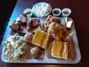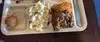 Tuesday lunch. Parking is really tight at this corner BBQ place. I appreciated the 1/4 lb brisket serving, even if it was a bit dry. Their sauce seems to have a hint of cola. My favs were the pea salad, squash casserole, and sweet, buttery cornbread. With a drink, I got out for $25.