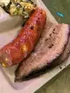 Lean brisket juicy and tender large amount of salt and pepper rub... a biting smoke. Ribs tender and sweet with an herbaceous rub. Unique. Old style sausage with similar spice profile to the rib rub. Juicy and relatively coarse grind. Parking is sparse. You might need to use one of the overfill lots.