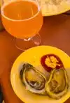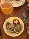 We made reservations but found out that if you want to sit outside, you need to make reservations specifically for the patio. They say us in the back room, which was so noisy, we waited a half hour to get a table out on the patio. They give you a bottle of still water, as well as a bottle of carbonated water. We ordered I’m the Brussels sprouts, and the sunchokes. Both appetizers were excellent. Our main courses were also excellent. The Smith burger was huge, and came with a pile of great fries. The salmon was good. The shrimp and grits were some of the best I ever had. They have a decent beer selection. The wait staff was very attentive and took good care of us.