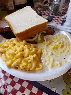 We stopped in for lunch and got a brisket sandwich and a sausage sandwich, and an order of creamed corn It was nice. It was around 2:30 in the afternoon, on Saturday, so we were able to order and get served right away. We both loved the brisket and the sausage sandwiches. The meat was moist and the sausage was juicy and the creamed corn was very good.The sauce however was thin and lacked a lot of flavor, but overall the food we had was excellent. Won't hesitate to go back for more. The staff was friendly and the restaurant was clean. My wife says beware of the ladies room. They need to replace the toilet seat.