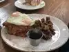 Banana foster toffee waffle comes with bacon... Plenty of bacon. Yum. Service by the whole staff was terrific... Especially Nick. Banjo & bacon.