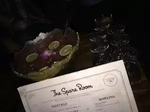 My husband and I had a fantastic time at The Spare Room. Its a quaint, vintage feel of the prohibition era.. , great way to start the evening with delicious cocktails while playing board games like Jenga or connect the dots.. We really wanted to experience the vintage hard wood floor bowling alley, but it was a booked night, I recommend to call a month before you visit if you would like to reserve a lane. We also reserved a table I also recommend you reserve a table so you can enjoy the scenery and board games.. We did not have anything food wise from the menu but the selection looked great... I would consider this a high end lounge so expect to pay to play...