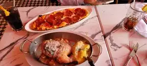 Made a same day reservation with a note to say we had just gotten married in Vegas and flying back to the UK tomorrow, incase they could make it a special evening. We arrived and I told the server to possibly read the reservation note, they didn't....the disappointment was a fair bit. I asked for a table outside for a bit of atmosphere and it was nice to not have to wait as I'm guessing most people like to sit there under the heaters on a cute little table on the street. We ordered some bread and garlic to start which was yummy! I then had the garlic chicken and mushroom pasta with a mountain of parmesan which was AMAZING! My husband had the calzone, I did pinch a bit to try and that was so so good! The female server did like to ignore us when I asked her for water a couple of times which I felt was slightly rude but the male servers were always on the ball. I forgot to take photos, which isn't usually like me but definitely make a visit here, even if I felt a little neglected when I first arrived due to the reservation note not being read.