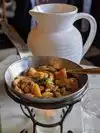 We had lunch here many, many years ago and looked forward to having lunch here again. The staff was friendly and helpful in making our selection. We shared the 40 clove garlic chicken and was not disappointed. We had plenty to eat for the two of us. This is a restaurant to be experienced. We walked to the restaurant, so not sure if parking is close by. There is some on street parking around the restaurant.