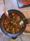 The prime rib was really tasty and perfectly cooked. Topped with a lot (!) of garlic. Very nice and authentic atmosphere.