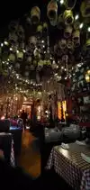 What an amazing place! Once we were seated in a position we approved of, we settled into the quirky environment, with mirrors and pew-like booths to enrich the visual experience, we enjoyed an excellent meal, lamb shanks and spare ribs cooked to perfection, and I even ventured to taste the garlic ice cream which was much more pleasant that I could have imagined. It really is unique and, despite the negative reviews, we thoroughly enjoyed our evening and would recommend the place.