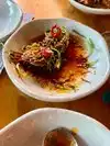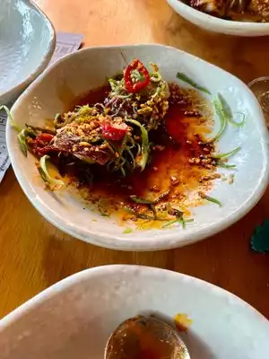 All four of us were delighted with the food, service and cocktails. The extremely delicious pork dumplings, creative avocado toast, scrumptious burger and crunchy, juicy fried chicken. Our drunks ranged from mango lassi to mezcal cocktail to a mojito-like refresher and the jalapeno-spiced, sunset-colored Tropic Like It's Hot. We've lived in Houston for years and this place was a real discovery. Still emerging from the pandemic, we love patio dining, and Coconut is perfect with great seating and a rain-protective palapa roof. Lovely landscaping and even a sandy beach spot.