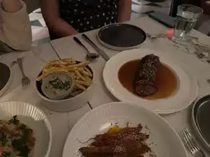 We had the perfect night, sitting in the window on a beautiful evening. The steak was melt-in-your-mouth perfection and we all loved the tray of spreads. Especially nice that they will serve it with cucumbers so you don't have to eat the (super delicious) bread!