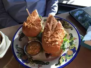 Wonderful outdoor casual dinner w family. Greatly enjoyed oysters, fried chicken sandwiches, burgers, breads w creative spreads.