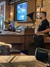 There are loudspeakers everywhere inside and it is very loud. If the weather is good one can sit outside which I find preferable. There was definitely something wrong with the soda gun which the bar lady denied. The wait staff said to avoid anything with tonic in it. The service was good and the food was good. They added $4.50 unexplained charge to the bill which, when questioned, said they assumed I would use a credit card. It is not advertised, so really should not be there and patrons could refuse to pay it. One additional item. The bartender said that they do not accept non US IDs so you might want to think twice about going there if you are a younger adult from overseas.