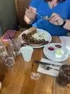 Food was good, service too. What really bugs me is the 22% service charge on the bill. The 22% are subject to tax as well. I usually tip 15%. If you can’t live from this, get a real job instead where you receive a salary. Now the management that doesn’t pay living wages or none at all makes this service charge mandatory, makes the customer not only pay their employees, but also pay tax on the tip. Worst is the fine print that indicates the employees probably won’t even receive the full amount, but greedy management cashes their tips. I hate American tipping culture so much and this is worst I’ve ever seen. Start paying your employees and stop making customers pay them instead.