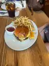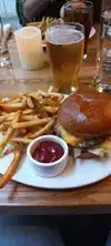 Really central spot for food with outdoor eating too. Very tasty burger and chips of generous size, friendly staff too, seated us swiftly and where we wanted to be.