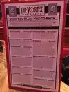 If you want a grown-up hamburger experience, the Vortex may be the right place for you. It's a small place with decent parking, fairly easy to find. The fun starts when you park and you notice the sign threatening to tow your vehicle if you are not a Vortex customer. Mental note to register when you walk in-- but it turns out, no one cares. The place itself is filled with all sorts of bric a brac and there is a busy bar with the requisite collection of barflys on one side of the place. You can sit there, or at any one of the tables that fill the rest of the floorspace. Burgers are the main thing here, and there ate plenty to choose from, along with other good pub dishes. I ordered the blue cheese burger and it was in fact delicious. Hang on to the menu-- it's full of rules and explanations and expectations of the Vortex's clientele which you may or may not meet. In fact, the whole place is full of instructional signs. You may or may not find all this funny. we did at first and then kind of tired of the snarkyness. There is no question though that the food is terrific, and reasonably priced. It's a good place to visit, but you won't want to live there.