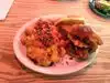 Very cool spot with tasty burgers. I had the Hell's Fury and was not disappointed but I will say it is hot. Fried pickles were also tasty as well.
