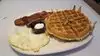 Tasty waffles and breakfast in general. Beware: plates are BIG. I recommend sharing, specially if you not a big eater Service was good. Two waitresses, one friendlier than the other Sausages are yummy