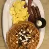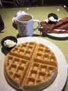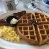 Visiting my family (but tired of cereal for breakfast) my son and I stopped here. We loved the kitschy decor especially the waffle characters. Then the food came and it was great!! Besides waffles we had eggs and bacon which were equally delicious. It was a bit more expensive then I expected but totally worth it. Don’t think about it - just go!!!