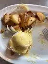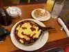 Wife and I split a signature dish, their Waffle Benedict. Two mini waffles, two Canadian bacon and poached, a small side of potatoes. coffee,a small OJ, and a small milk. $30. Quantity was sufficient for two, Bennie was OK, waffle tasty, Bennie sauce sweet rather than a hint of lemon. Service good, staff friendly if not real attentive. Had to keep asking for coffee, :-( Walking distance from several hotels on the South Hotel Circle. Breakfast until 1 PM, them Mexican food.