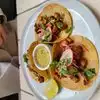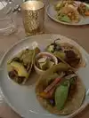 The guacamole blew us away- strawberries was an unexpected culinary yum! The vegan Caesar salad was great but watch the crunchy chick peas. We thought we could have easily cracked a tooth. The mushroom tacos were amazing!! The buffalo tacos were Very spicy! Atmosphere beautiful but dark staff friendly and accommodating