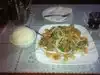 i come here every few months for the past 6 years just for salt pepper squid and shrimp. 2 months ago i complained to them about how unevenly spiced and tasteless, stuck-together squids were and how soggy the shrimp were due to excess piling of yellow onions. the orders usually come out quick, hot, crispy with green onion garnish. last week's squid were bland and not crispy and took a long time to arrive. the sauteed green beans was swimming in corn starch. the sauteed asparagus used celery as filler. it was even sliced diagonal to look like asparagus and yes it was swimming in corn starch. they have been turning up the heat in that proverbial water, the cooked squid did not know it.