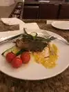 The only thing that was good was the bread for dinner. Salad had too much dressing and lettuce was soggy. Salmon was poor quality and not cooked right. Breakfast was good.