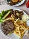 Good, generous, clean, and affordable. We enjoyed our meal a lot, and warmly recommend the place. 46 $ for two included a beer each, plus a de luxe hamburger served with fresh salad, tomatoes, French fries, etc. , plus coffee.