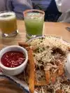 We came in late in the afternoon for a snack and a drink. They let us know the kitchen was going to close in five minutes so we ordered quickly. Gluten-free pretzel! Of course it was delicious. The fries were also perfectly cooked. I wish we would’ve had time to come for lunch. Drinks were also excellent. I had the tonic in time. Another person had the passionfruit drink, which was sweet but good. The winner was the Mezcal drink. I forget the name they let us sit there for over an hour, we were the only one in the restaurant which was very nice. I know I’ll be back for a meal and not just snacks and drinks