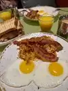 We arrived and immediately I asked for a coffee which never actually came. The man who came to serve us was very rude and had a moan at us for asking him to repeat what he said. There’s only 1 option for breakfast. Which is an American breakfast. It came with potatoes which looked so disgusting, tasted like cardboard and looked like toenails. The bacon was cold and disgusting, the toast was horrible. Afterwards I asked for my coffee again, and I was given a tea. The orange juice had so many bits and was terrible. Poor experience. Do not recommend.