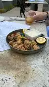 Came here to meet family for dinner. Promptly seated on deck. Wind was blowing and they turned on the portable gas infrared to keep the chill away Menu's given and drink's order taken. Drinks brought and basic meal order taken, Kobe Hamburger, scallops, poke, mussels, and chicken. Food brought hot and tasty. Waiters were attentive to our needs and we were satisfied with what we received.