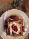 Sunday brunch. Ordered tomatoes watermelon appetizer drizzled with balsamic dressing. It was tasty but neither tomatoes or watermelon were flavorful as both were out of season. I ordered an omelette with avocado and fried potatoes. I asked them to go light on the salt so there appeared to be no seasoning on the omelette or potatoes. A little Tabasco took care of the blandness of three fluffy eggs with some avocado tucked in the fold. There appeared to be no other additions. My dining companion said the coffee was great.