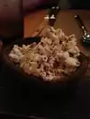 We got seated at a small table in a corner and were forgotten about for about 10 minutes. That did allow us time to review the menu. They had a fish special of scallops, but this is a Texas themed restaurant, so I decided against it and ordered the venison frito pie. We started with the trio of fries and the rock shrimp tacos, a good start. The venison frito pie was disappointing, it just didn't seem to have enough flavor. The mac and cheese side was quite tasty. W ended with tableside smores which was a fun ending. Mixed event