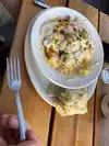 So I'm from the UK and I was on a trip to Portland with some friends and we stopped here for brunch. One friend got the 'Everything Naughty' and, despite being regular fan of mushroom gravy, found this one to be sweet and had a mucus-like texture. One of our party was a vegan, and we were excited to find that the menu catered to her requirements. She ordered the Spike burrito, veganised, which removed the sour cream - the only ingredient that added a cooling taste to this inferno of a burrito. I don't know how she powered through as much as she did. I, myself, ordered the big hit burrito, and found it essentially inedible. Before I even picked it up it was dripping with oil from the pesto. The sweet potato was undercooked and it contained whole cloves of roasted garlic that made the whole thing essentially inedible. The one positive thing I can say is the potato cakes were pretty good. On the whole, it was a disappointing experience and despite the waitress noticing that I had left my entire burrito practically untouched, didn't ask or attempt to ascertain the reason why I had wasted so much food, and didn't even attempt to intuit that there might be a problem. For having such high reviews, I'm extremely disappointed.