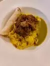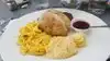 I loved the delicious migas. They were perfectly whipped and had a tart tasty tomatillo sauce. The sausage was also flavorful. The biscuit I ordered was also good with their own strawberry preserves.