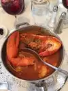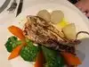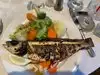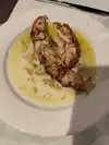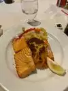 Went there for dinner 4 of us. Originally I was hesitant and wondered if we had made the right choice as the bar area is the first door the restaurant is through the side door and up the stairs. Food was served nice and hot, no issues regarding getting more bread that was also delivered warm. Our waiter was very efficient and was willing to go the extra mile to make sure we were happy. I had the shrimp, clams, scallops with rice it also comes with mussels which I cannot eat. Not a problem they gave more shrimp instead. My mother had the Bass which was on special she really enjoyed it. My husband had the salmon nice piece of salmon for the men who have a big appetite and mother husband had tilapia. For all the dishes the fish portions were not small. For 4 please along with beer and wine $96.00. Well worth the visit we will be back.