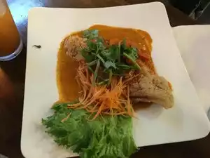 Our family had discussed stopping be as were were in the neighborhood and were certainly glad we did. We found the dishes to be large enough to dine family style and the prices were very reasonable. The fried fish was crispy and delicious, but the sauce was even better. We were all spooning it over our rice and nothing was left over. Everything seemed very fresh and the kitchen was very fast, even during a busy lunch. Our server was excellent and very attentive. This is definitely worth a try.