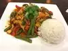 Red and green curry is a must, you might rry some spring rolls and TomKa with shrimps before. Enjoy!!!.........